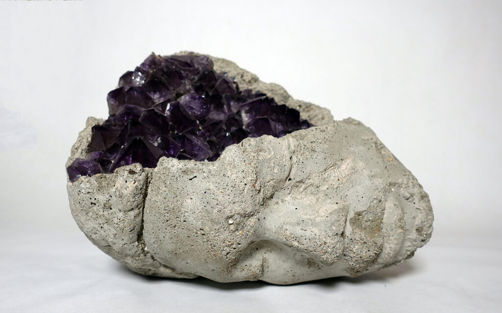 Damon Davis, Cracks II, 2020. Concrete and quartz amethyst geode. Courtesy of the artist.
