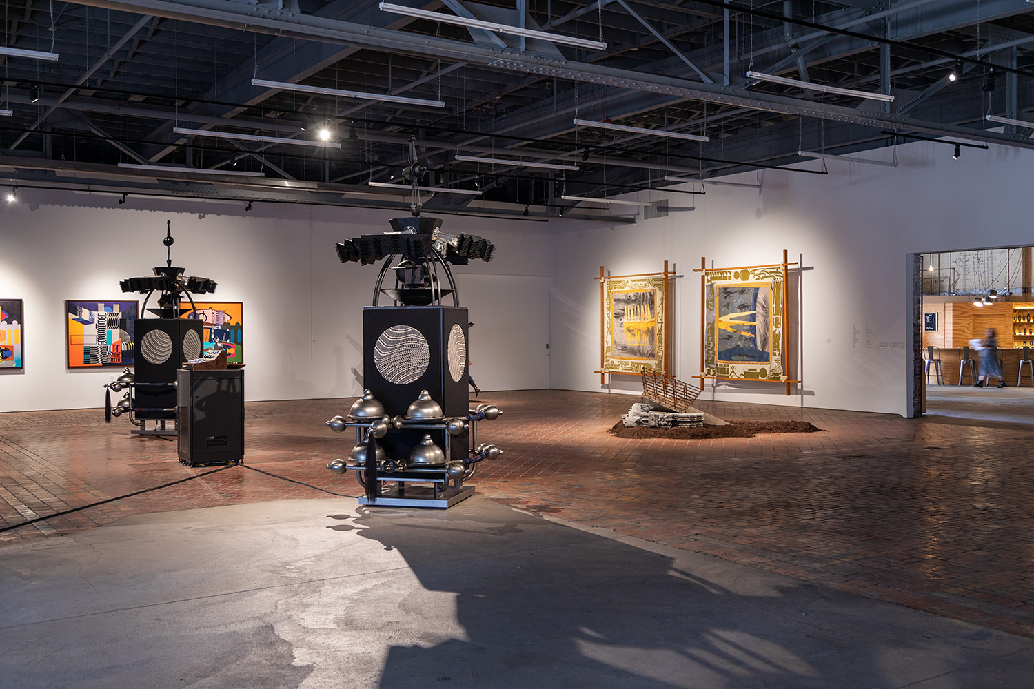 In celebrating the global phenomena of sound as a platform for expression, MOCAD is pleased to present Paradox of Harmonics, the first U.S. solo museum exhibition of Toronto-based multidisciplinary artist Nep Sidhu. Paradox of Harmonics is driven by Sidhu’s visual inquiries on communal remembrance and how sound impacts both collective and individual responses towards living knowledge production and being in the world with sound. Sidhu’s practice and search are rooted in his upbringing as a Sikh, a religion where inner listening is encouraged to encounter and create unbroken sounds and melodies. As Sikhi calls for collective meditation and remembrance, Paradox of Harmonics honors these beliefs along with the sonic philosophy of musician and composer Sun Ra, whose creative legacy called for personal autonomy through communal improvisation. The works presented will include a variety of mixed media, tapestries, paintings, sculptures, and videos. In celebrating the creative legacy of Detroit’s sound, Paradox of Harmonics will feature a newly commissioned work that exists as a sculptural omni-directional sound system within the exhibition. Made in conversation with Craig Huckaby, brother of the late DJ and producer Mike Huckaby, this work weaves together Mike Huckaby’s Sun Ra Reel-To-Reel work with sculptural elements that engage the praxis of Black Classical Music — emphasizing an individual freedom within improvised group settings to suggest a striking harmony within one’s personal making and transitioning.
