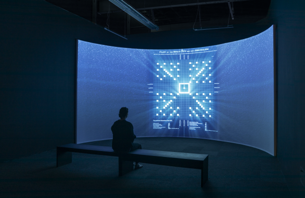 In Un-Charting, Keren weaves historical narratives with recent interviews to engage with the imperial imagination’s plan for the New World, Europe, and the Middle East. The video installation at the heart of Un-Charting presents, and is based on, the actual words of British colonial naval officer Richard Brothers, who comes to us from the year 1798, welcoming the viewer to discover his prophecy of Jerusalem. Brothers introduces the viewer to his detailed plan for the city of Jerusalem, a place he had never visited but instead created in his imagination.
